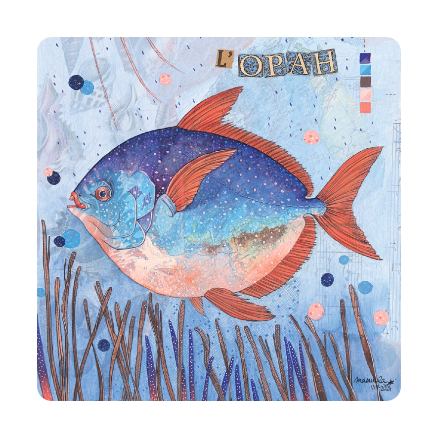 Carte d’art format 15x15cm imprimée avec des encres végétales sur un papier de création 320gr issu de forêts gérées durablement.