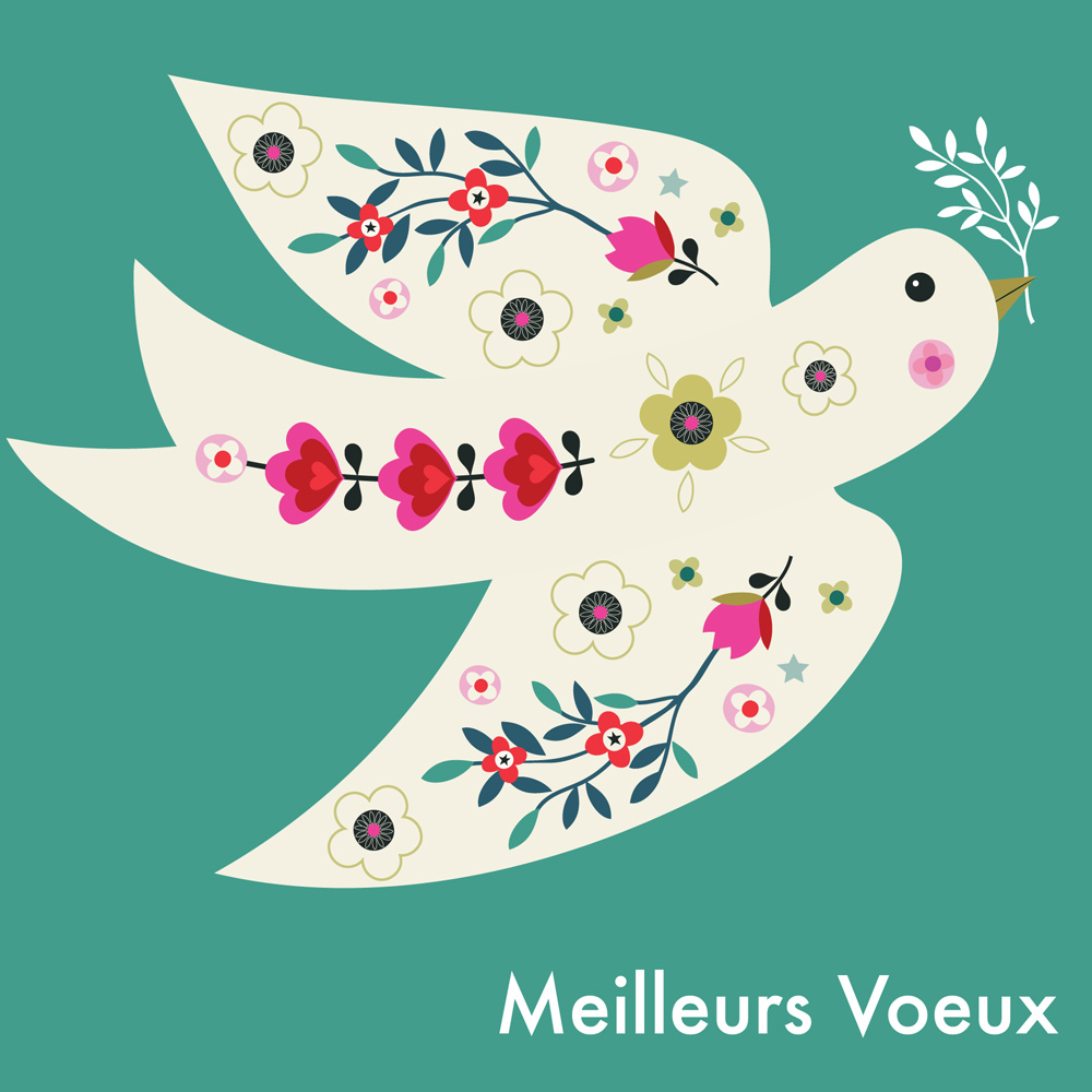 Carte 14x14cm imprimée avec des encres végétales sur un papier issu de forêts gérées durablement. Vernis sélectif pailleté.