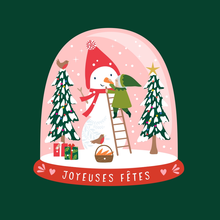 Carte 14x14cm imprimée avec des encres végétales sur un papier issu de forêts gérées durablement. Vernis sélectif pailleté.