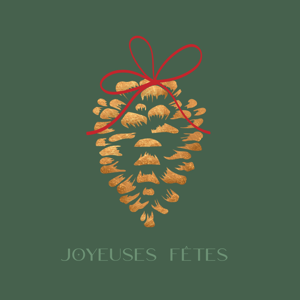 Carte 14x14cm imprimée avec des encres végétales sur un papier issu de forêts gérées durablement. Vernis sélectif pailleté.